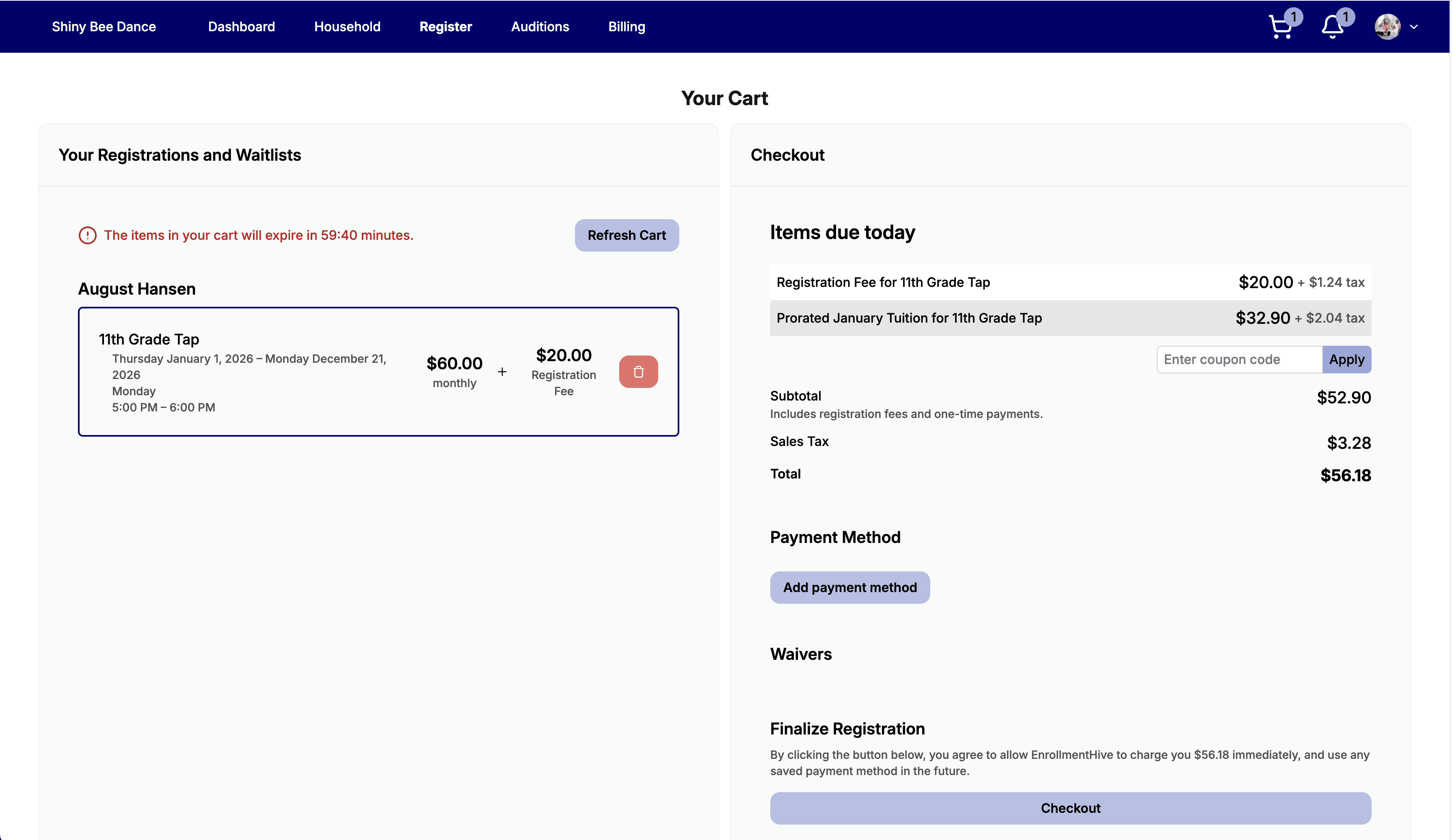 Make registering for your classes as easy as buying a T-Shirt! EnrollmentHive allows your families to register in minutes while decreasing your admin time.